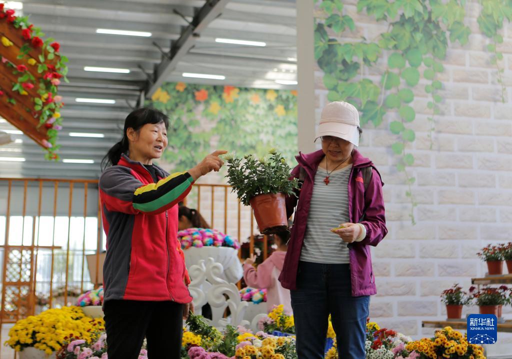 10月21日,在江蘇射陽(yáng)縣洋馬菊花節,市民在購買(mǎi)盆栽。