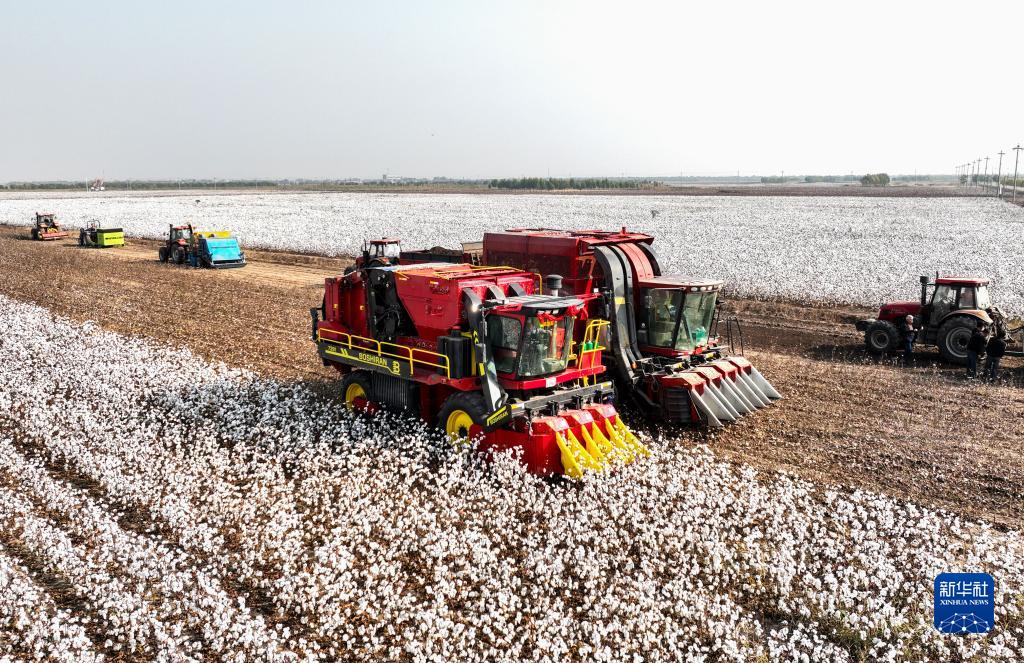 當日,山東省無(wú)棣縣西小王鎮國家級棉花生產(chǎn)基地核心示范區內一片棉花機采繁忙景象。無(wú)棣縣地處黃河三角洲棉區中心,可利用鹽堿耕地資源豐富,植棉歷史悠久,常年植棉面積穩定在10萬(wàn)畝左右。近年來(lái),該縣引進(jìn)專(zhuān)業(yè)科研團隊,對接新型農業(yè)經(jīng)營(yíng)主體、涉棉企業(yè),推動(dòng)以全程機械化為支撐的黃河三角洲棉區棉花產(chǎn)業(yè)高質(zhì)高效發(fā)展。