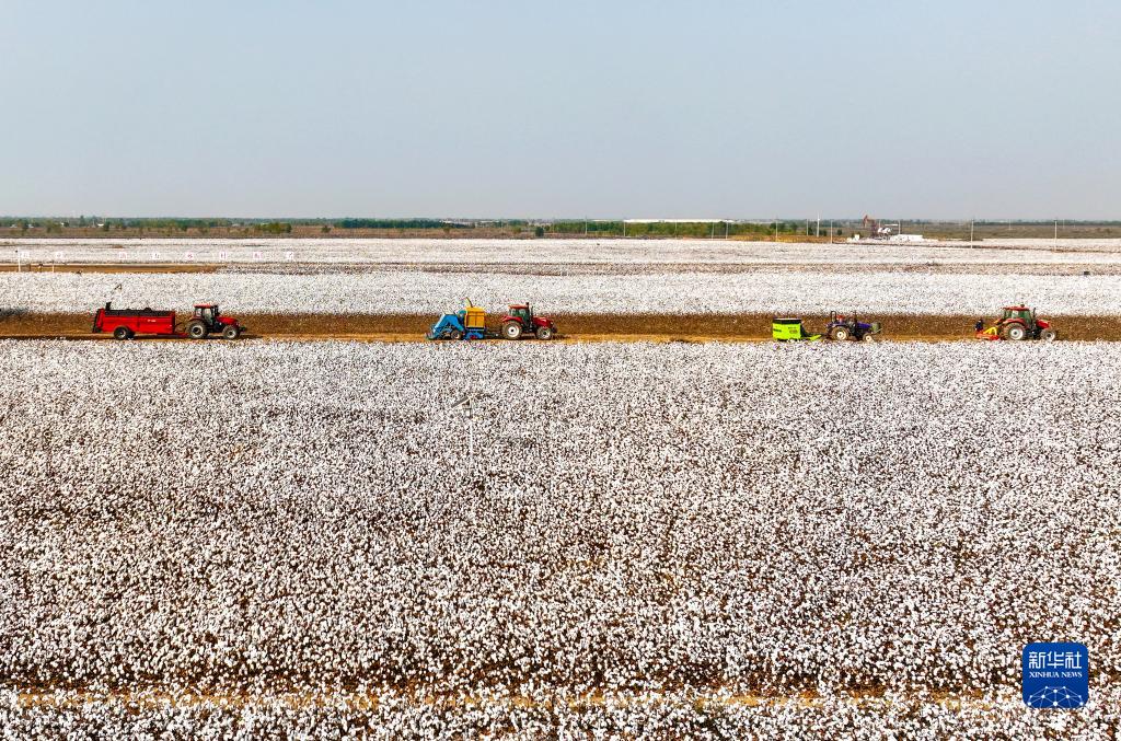 當日,山東省無(wú)棣縣西小王鎮國家級棉花生產(chǎn)基地核心示范區內一片棉花機采繁忙景象。無(wú)棣縣地處黃河三角洲棉區中心,可利用鹽堿耕地資源豐富,植棉歷史悠久,常年植棉面積穩定在10萬(wàn)畝左右。近年來(lái),該縣引進(jìn)專(zhuān)業(yè)科研團隊,對接新型農業(yè)經(jīng)營(yíng)主體、涉棉企業(yè),推動(dòng)以全程機械化為支撐的黃河三角洲棉區棉花產(chǎn)業(yè)高質(zhì)高效發(fā)展。