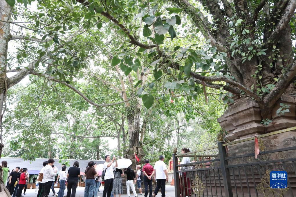 10月18日,游客在云南省景洪市勐罕鎮曼聽(tīng)村參觀(guān)古榕樹(shù)。