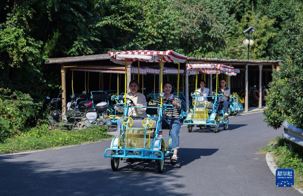 10月23日,游客在建德市楊村橋鎮嶺源樂(lè )活島休閑基地體驗自行車(chē)騎行。