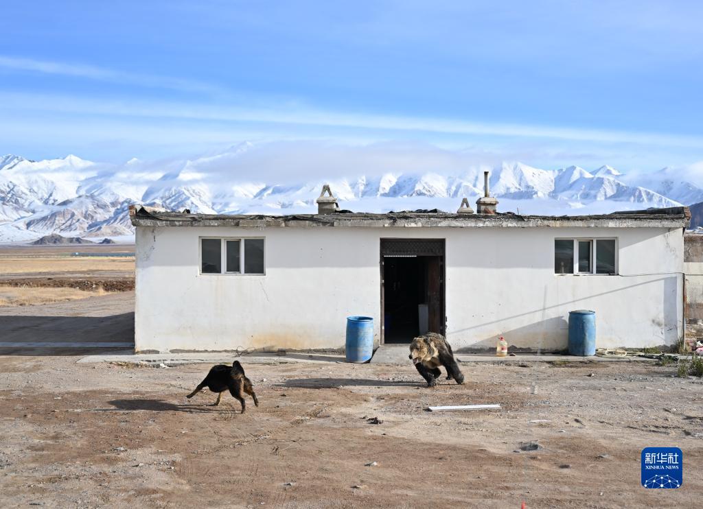 10月17日,一只藏馬熊(右)闖入阿爾金山國家級自然保護區依協(xié)克帕提管護站。