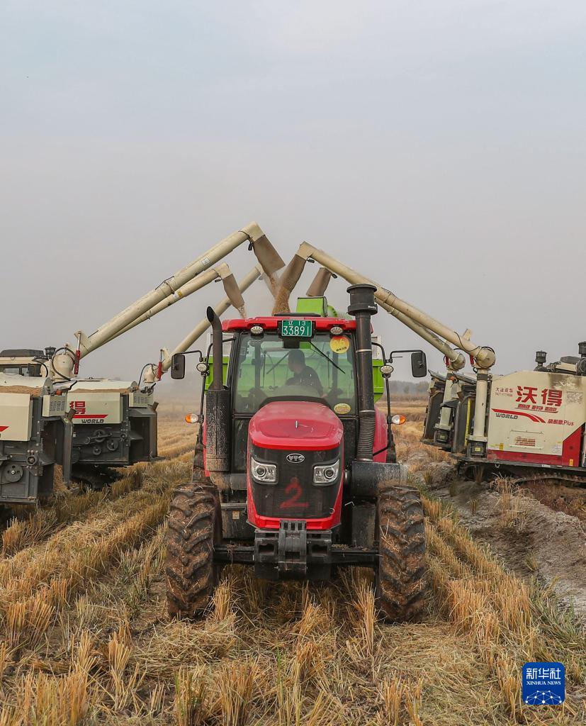 金秋時(shí)節,遼寧省阜新市彰武縣大冷鎮上三家子村的稻田里機聲隆隆,一片豐收的繁忙景象。