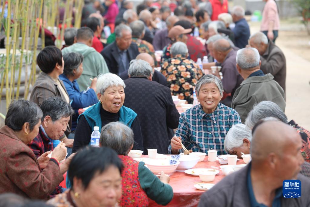 10月23日,河南省焦作市溫縣祥云鎮南賈村老人在參加“重陽(yáng)宴”。