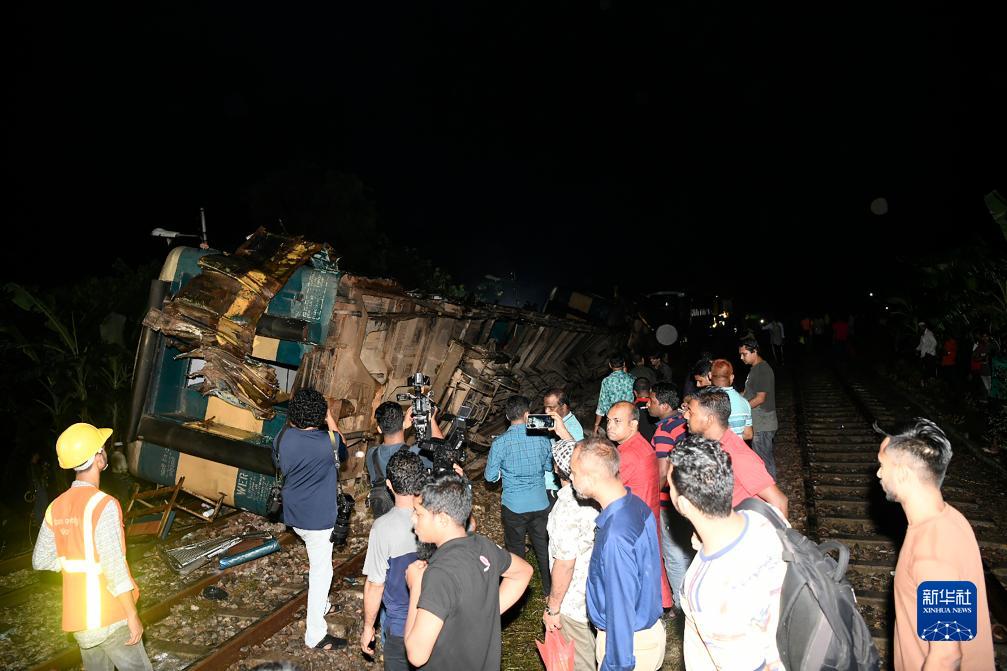 10月23日, 人們聚集在孟加拉國吉紹雷甘杰地區火車(chē)相撞事故現場(chǎng)。