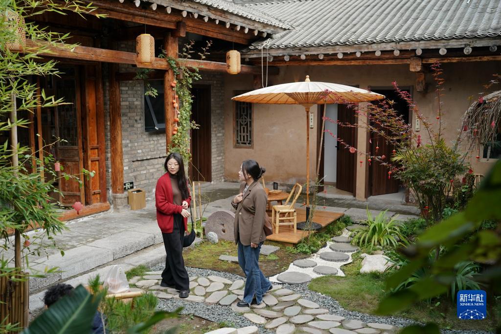 10月21日,游客在朱家灣村一家民宿內參觀(guān)。