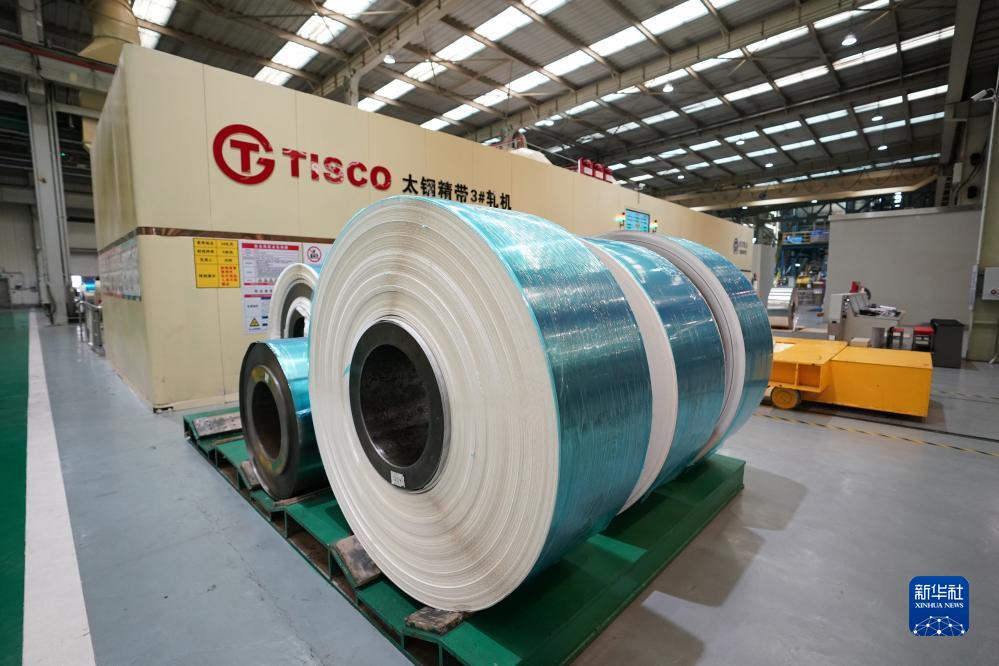 這是10月24日拍攝的中國寶武山西太鋼不銹鋼精密帶鋼有限公司車(chē)間一角。