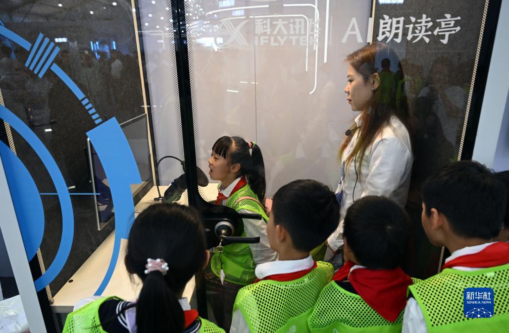 10月24日,小朋友們在第六屆世界聲博會(huì )上參觀(guān)體驗AI朗讀。