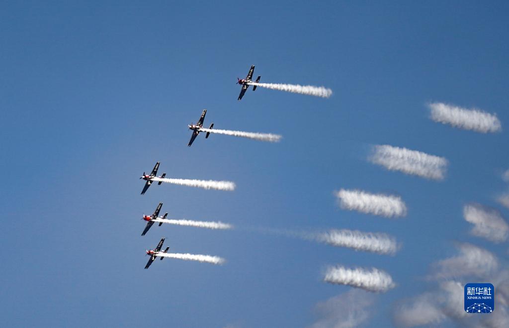 當日,2023中國航空產(chǎn)業(yè)大會(huì )暨南昌飛行大會(huì )組織空軍航空大學(xué)“紅鷹”飛行表演隊與歐洲環(huán)球之星特技飛行表演隊駕駛飛機在南昌市區上空進(jìn)行了特技飛行表演,飛越滕王閣上空。