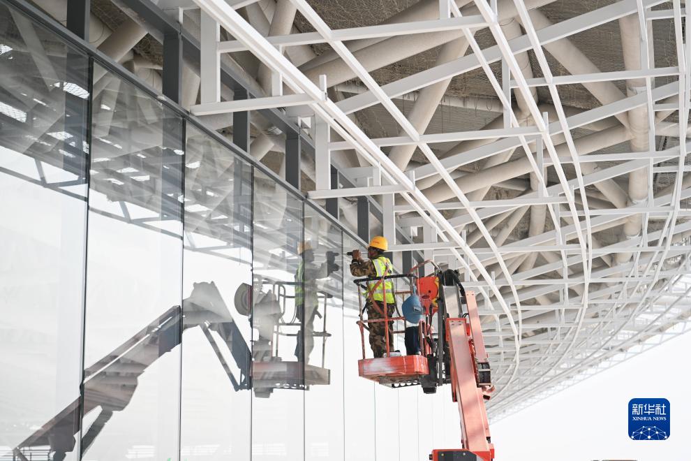 工人在雄安體育中心體育場(chǎng)施工(10月24日攝)。