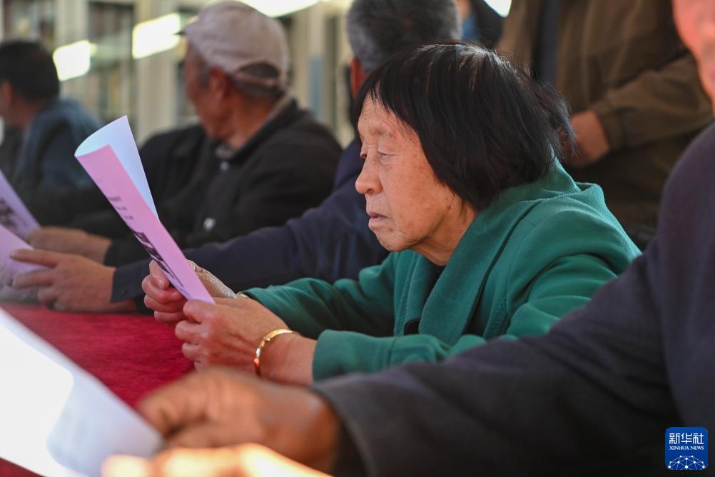 10月24日,村民在山西省左權縣寒王村農家書(shū)屋查看宣傳單。