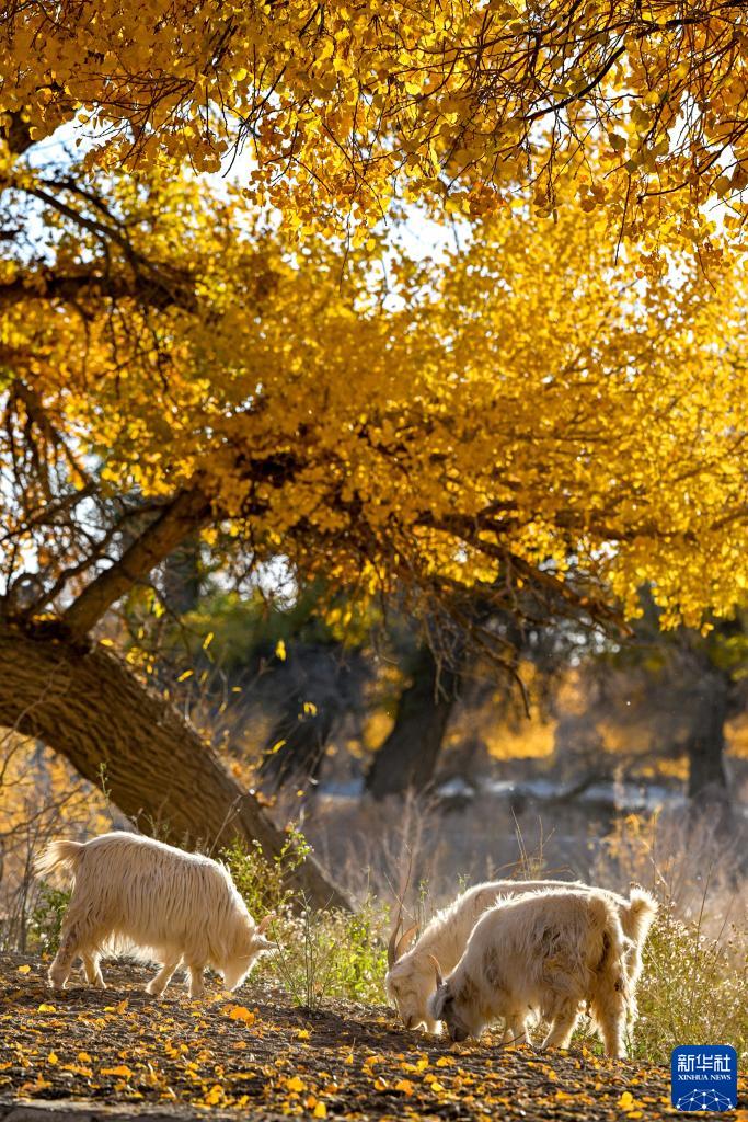 金秋時(shí)節,內蒙古自治區阿拉善盟額濟納旗的胡楊林披上“金裝”。
