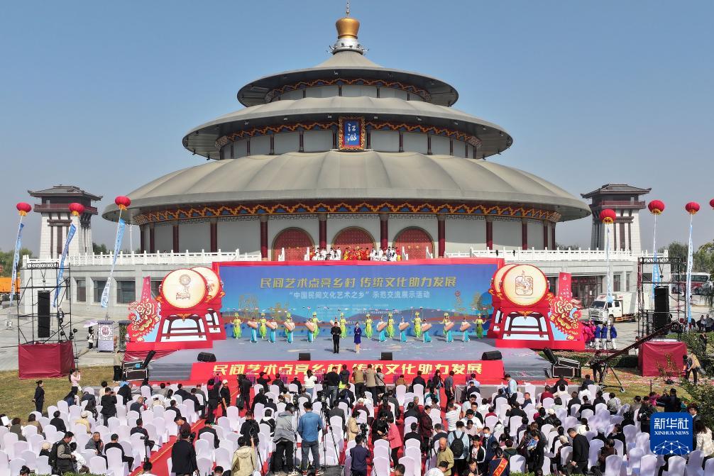 10月25日,演員在“中國民間文化藝術(shù)之鄉”示范交流展示活動(dòng)現場(chǎng)表演節目(無(wú)人機照片)。