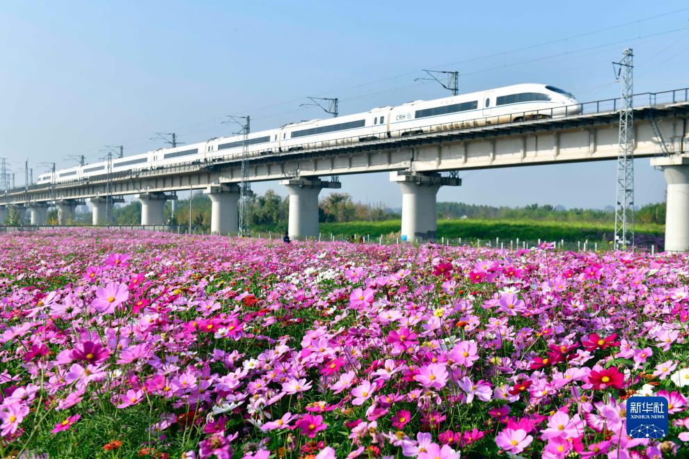 這是10月25日拍攝的日照市東港區碳匯花海。