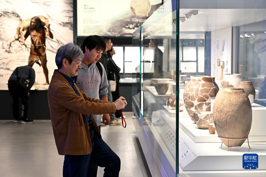 10月25日,參加第四屆中國考古學(xué)大會(huì )的外國專(zhuān)家、日本九州大學(xué)教授宮本一夫(前)在陜西考古博物館內參觀(guān)拍攝。