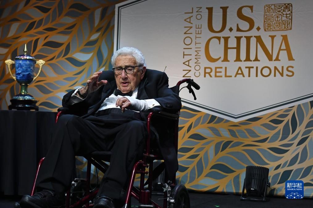 美中關(guān)系全國委員會(huì )24日在紐約舉行年度頒獎晚宴,兩國領(lǐng)導人向晚宴致賀信。晚宴向美國前國務(wù)卿基辛格頒獎,表彰他為中美關(guān)系發(fā)展所作的卓越貢獻。百歲高齡的基辛格在接受頒獎時(shí),全場(chǎng)嘉賓報以持久熱烈掌聲。他在獲獎致辭中說(shuō),“我一生中一半時(shí)間都在為美中關(guān)系工作”,美中之間的和平與合作至關(guān)重要,符合兩國和世界的利益?;粮窈粲趺乐袃蓢餐苿?dòng)雙邊關(guān)系重回正軌,“正如我50年前所相信的那樣,我們能找到克服困難的出路”。