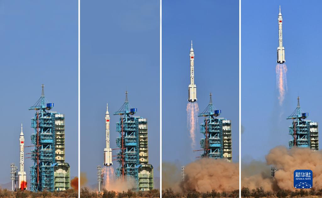 這是神舟十七號載人飛船發(fā)射升空過(guò)程(拼版照片,10月26日攝)。