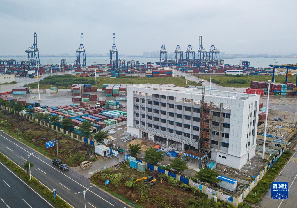 10月24日拍攝的建設中的洋浦港封關(guān)運作項目海事邊檢業(yè)務(wù)用房(無(wú)人機照片)。