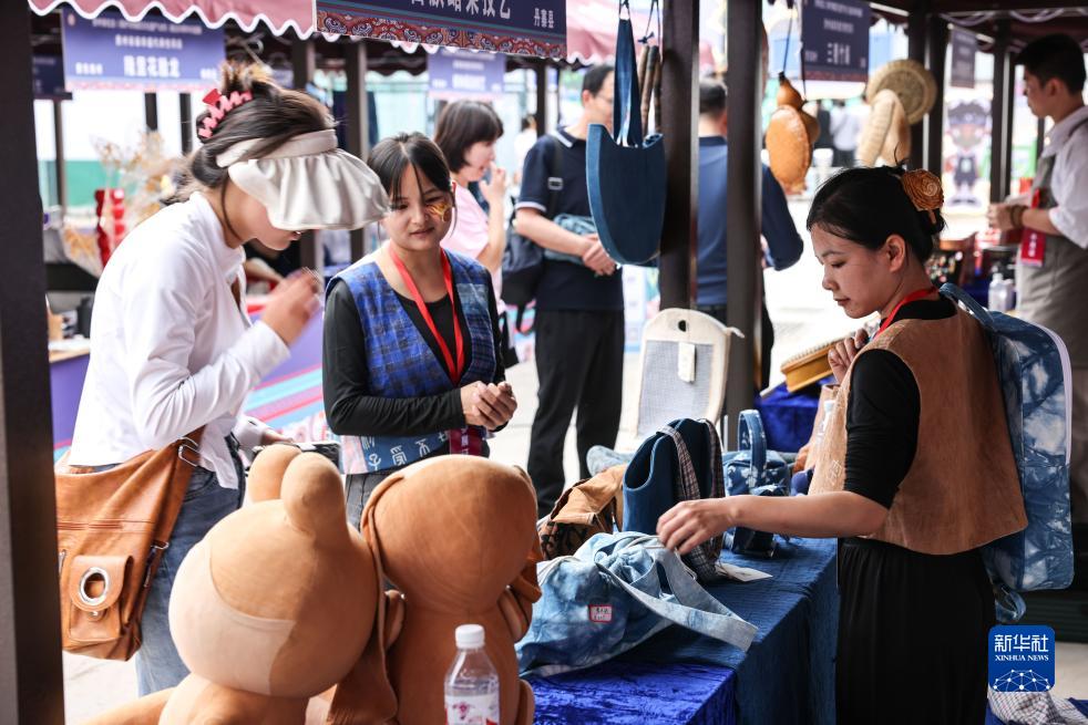 10月25日,游客在臺江縣球場(chǎng)旁的非遺集市上選購特色產(chǎn)品。