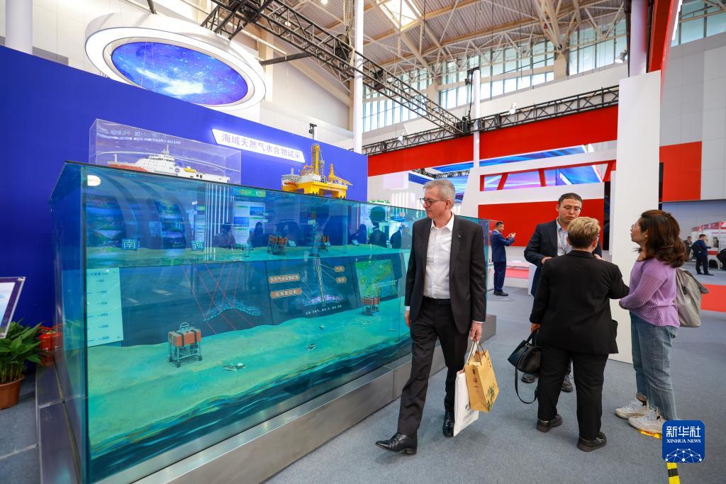 10月26日,在天津梅江會(huì )展中心,觀(guān)眾在國際礦業(yè)展覽會(huì )上參觀(guān)海域礦產(chǎn)資源開(kāi)采模型。
