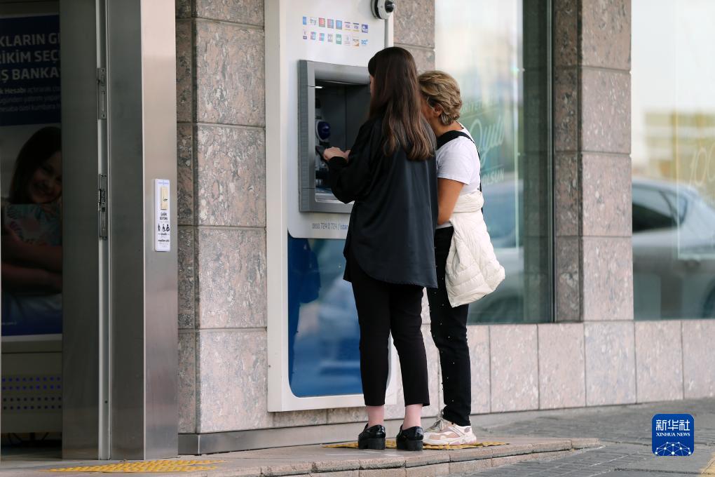 10月26日,在土耳首都其安卡拉,兩名女子在一處銀行自動(dòng)柜員機前辦理業(yè)務(wù)。