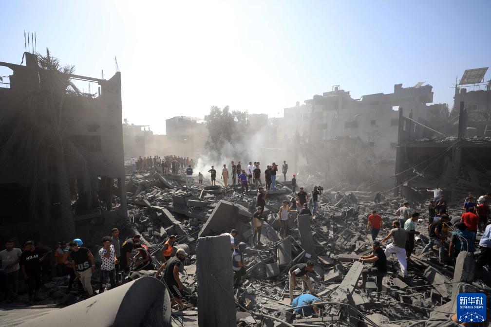 10月26日,人們在加沙地帶南部城市汗尤尼斯的廢墟中搜救。