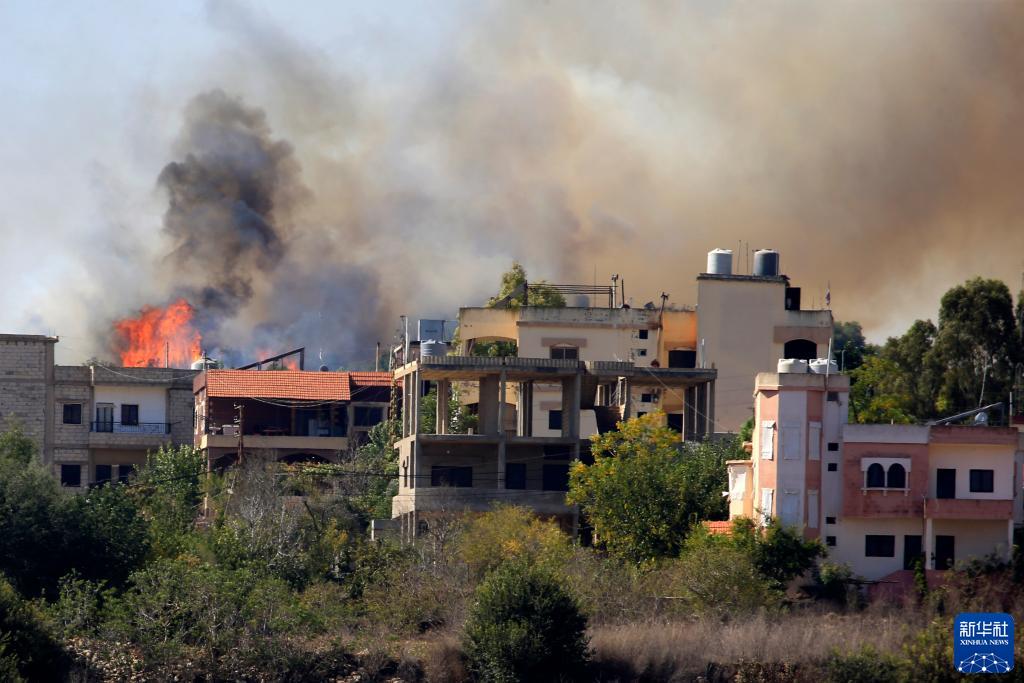 10月26日,在黎巴嫩艾塔沙卜,一處居民區遭炮擊后起火。