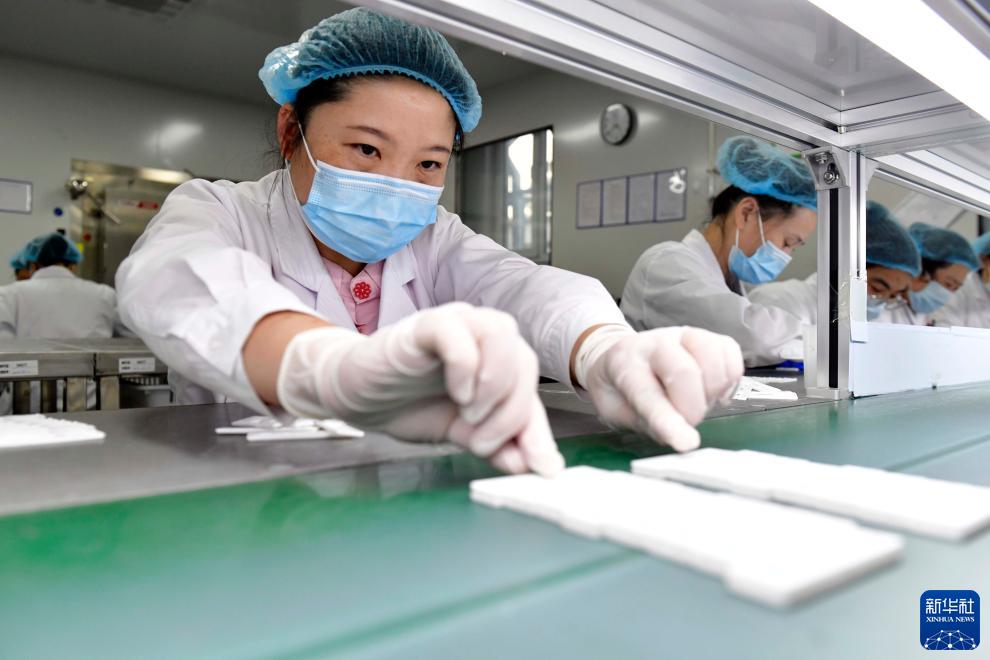 10月26日,在山東美正生物科技有限公司生產(chǎn)車(chē)間,工作人員在生產(chǎn)微生物快速檢測盒。