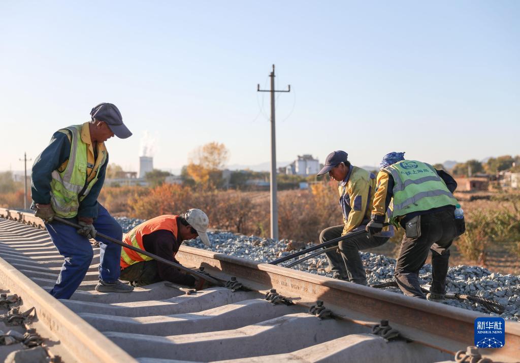 10月26日,施工人員在錦承線(xiàn)金溝站(不含)-朝陽(yáng)南站(不含)區間段轉正線(xiàn)改造封鎖施工現場(chǎng)作業(yè)。