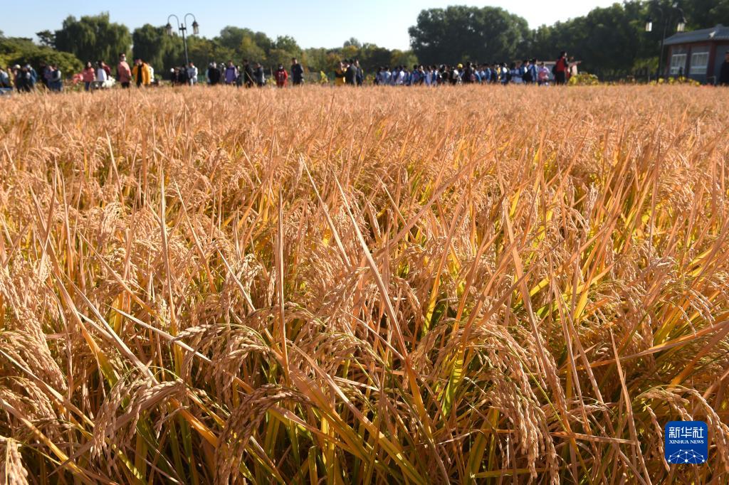 10月27日在圓明園“多稼如云”景區拍攝的即將收割的水稻。