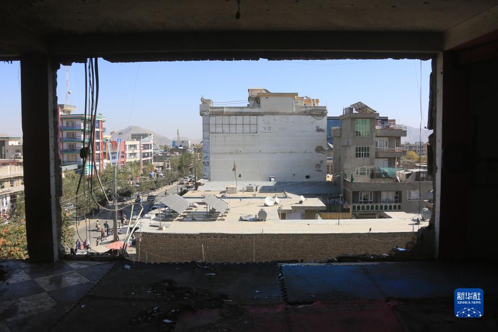 這是10月27日在阿富汗首都喀布爾拍攝的爆炸現場(chǎng)受損的建筑。