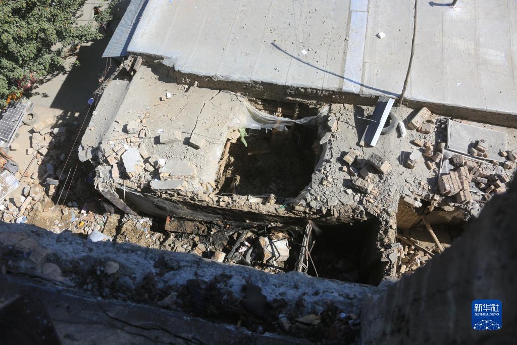 這是10月27日在阿富汗首都喀布爾拍攝的爆炸現場(chǎng)受損的建筑。