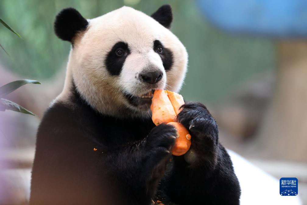 10月27日,大熊貓“酷酷”在享用美食。