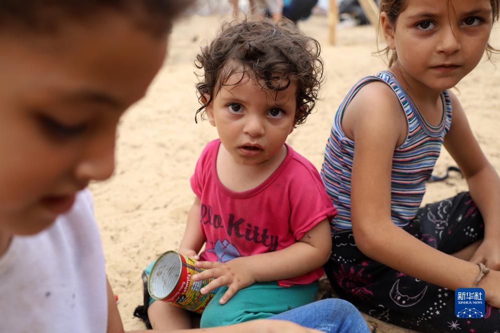 這是10月27日在加沙地帶南部城市汗尤尼斯一處臨時(shí)營(yíng)地內拍攝的巴勒斯坦兒童。