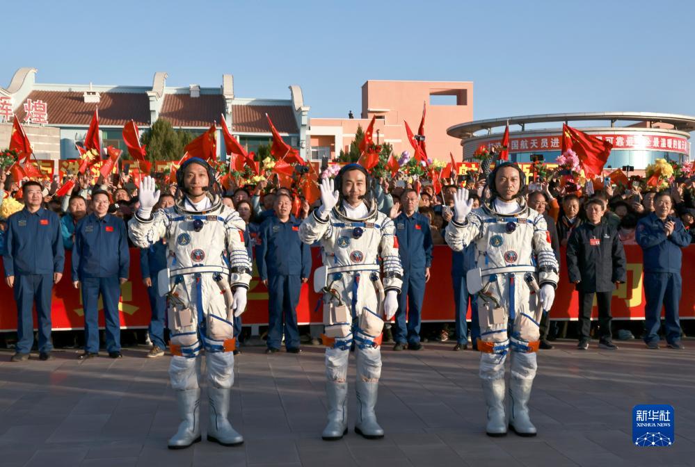 神舟十七號載人飛行任務(wù)航天員乘組出征儀式在酒泉衛星發(fā)射中心舉行