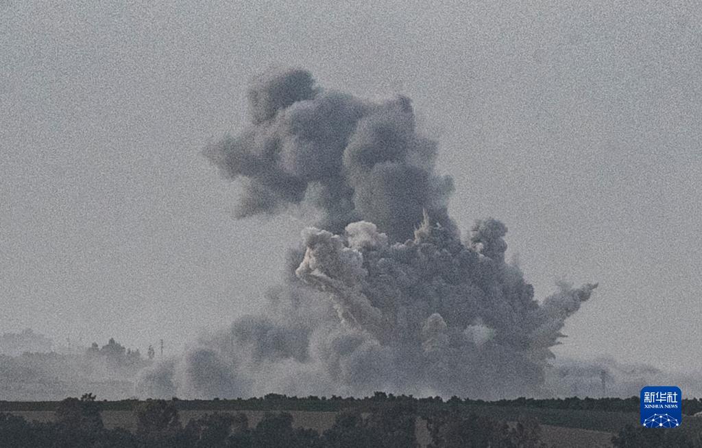 這張10月29日在加沙邊境以色列一側拍攝的照片顯示,加沙地帶北部區域被以軍襲擊后升起濃煙。