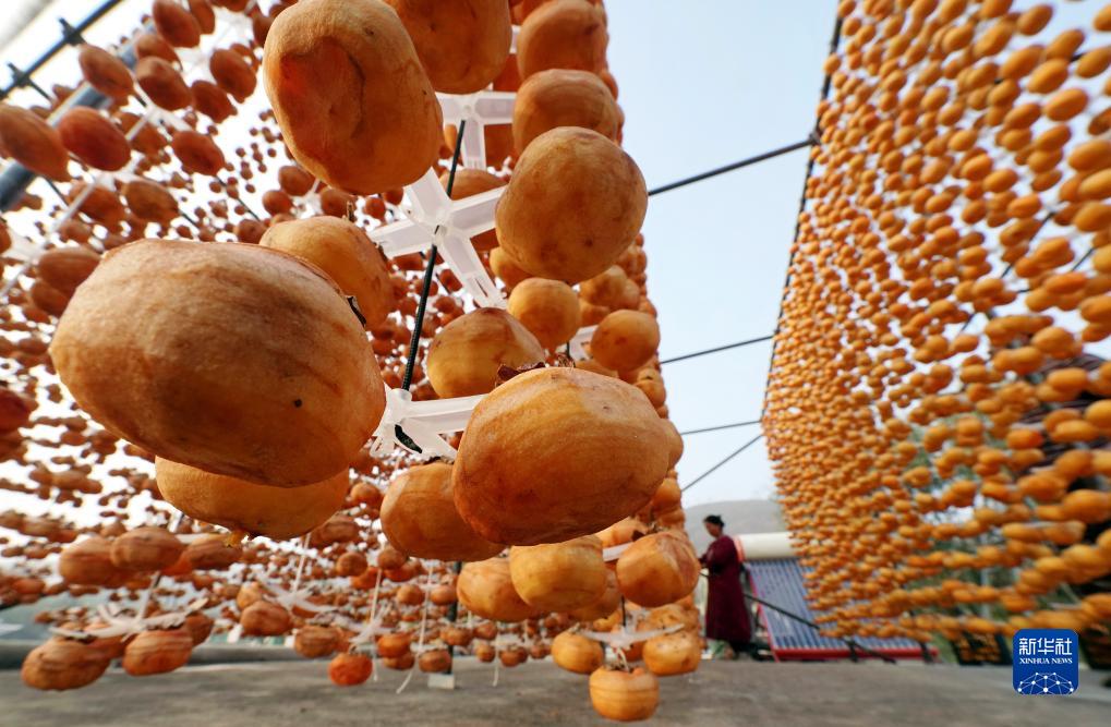 10月29日,河北省順平縣安陽(yáng)鎮永勝村的果農楊沙沙在晾曬柿餅。