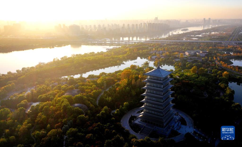 10月29日拍攝的西安世博園秋景(無(wú)人機照片)。