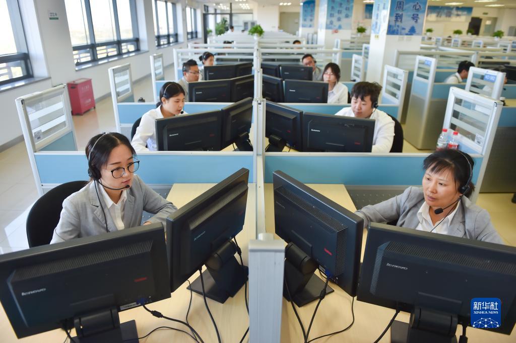 2019年11月13日,在位于北京亦莊的12345市民熱線(xiàn)話(huà)務(wù)大廳,工作人員接聽(tīng)熱線(xiàn)電話(huà)。北京堅持“民有所呼、我有所應”,依托12345市民服務(wù)熱線(xiàn),創(chuàng )新開(kāi)展吹哨報到、接訴即辦。
