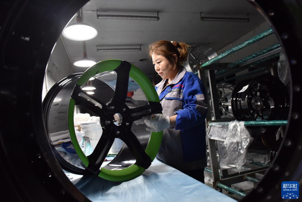 10月30日,威縣一家汽車(chē)輪轂生產(chǎn)企業(yè)工人在對輪轂進(jìn)行質(zhì)檢。