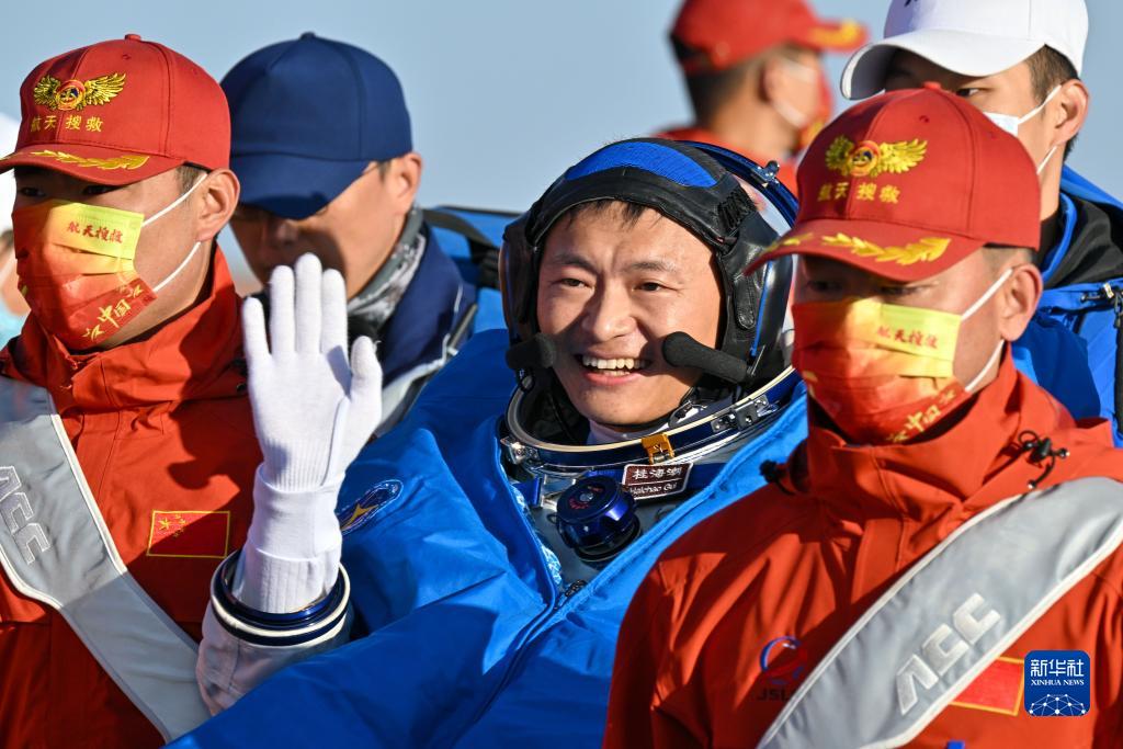 10月31日,神舟十六號載人飛船返回艙在東風(fēng)著(zhù)陸場(chǎng)成功著(zhù)陸。這是航天員桂海潮安全順利出艙。