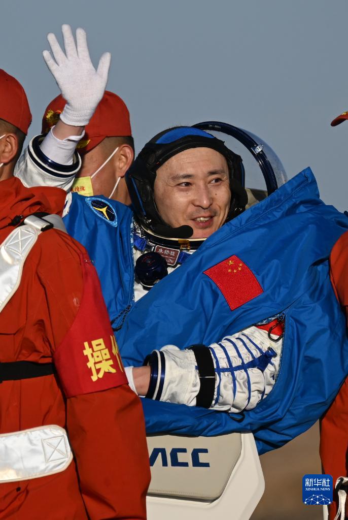 10月31日,神舟十六號載人飛船返回艙在東風(fēng)著(zhù)陸場(chǎng)成功著(zhù)陸。這是航天員朱楊柱安全順利出艙。