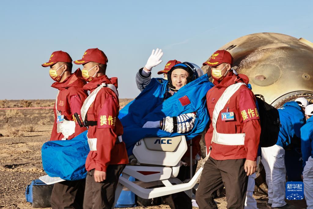 10月31日,神舟十六號載人飛船返回艙在東風(fēng)著(zhù)陸場(chǎng)成功著(zhù)陸。這是航天員朱楊柱安全順利出艙。