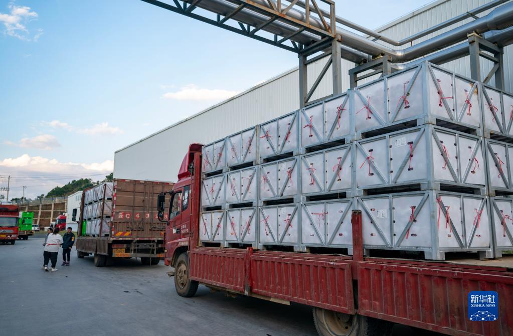 10月30日,卡車(chē)將剛采摘的蘋(píng)果運輸至昭通市一家蘋(píng)果企業(yè)分揀。