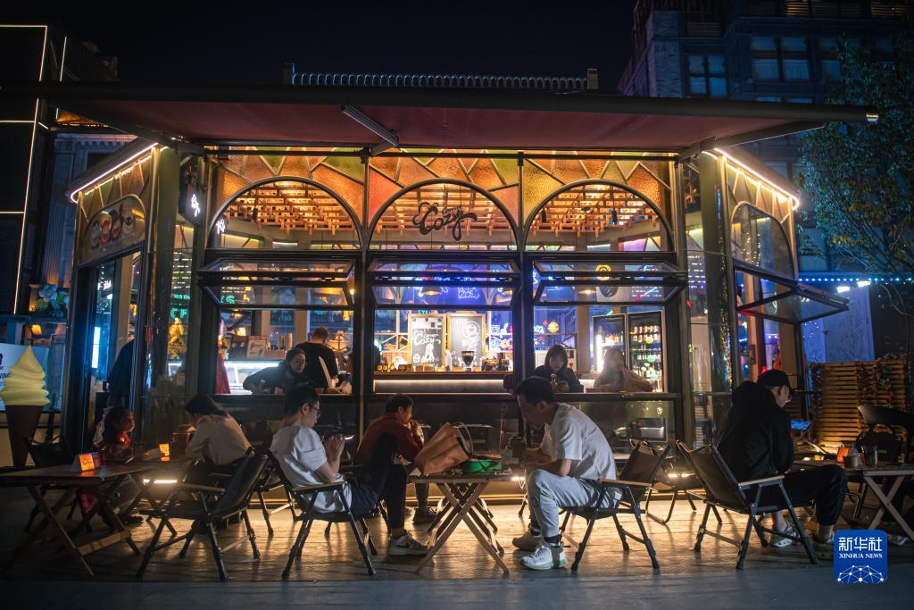 游人在寧波老外灘步行街的一家咖啡館休閑(10月31日攝)。