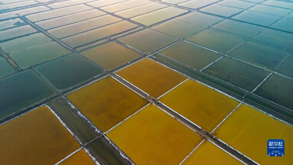 深秋時(shí)節,遼寧省營(yíng)口市老邊區的鹽田色彩斑斕,宛如大地的調色板,美不勝收。