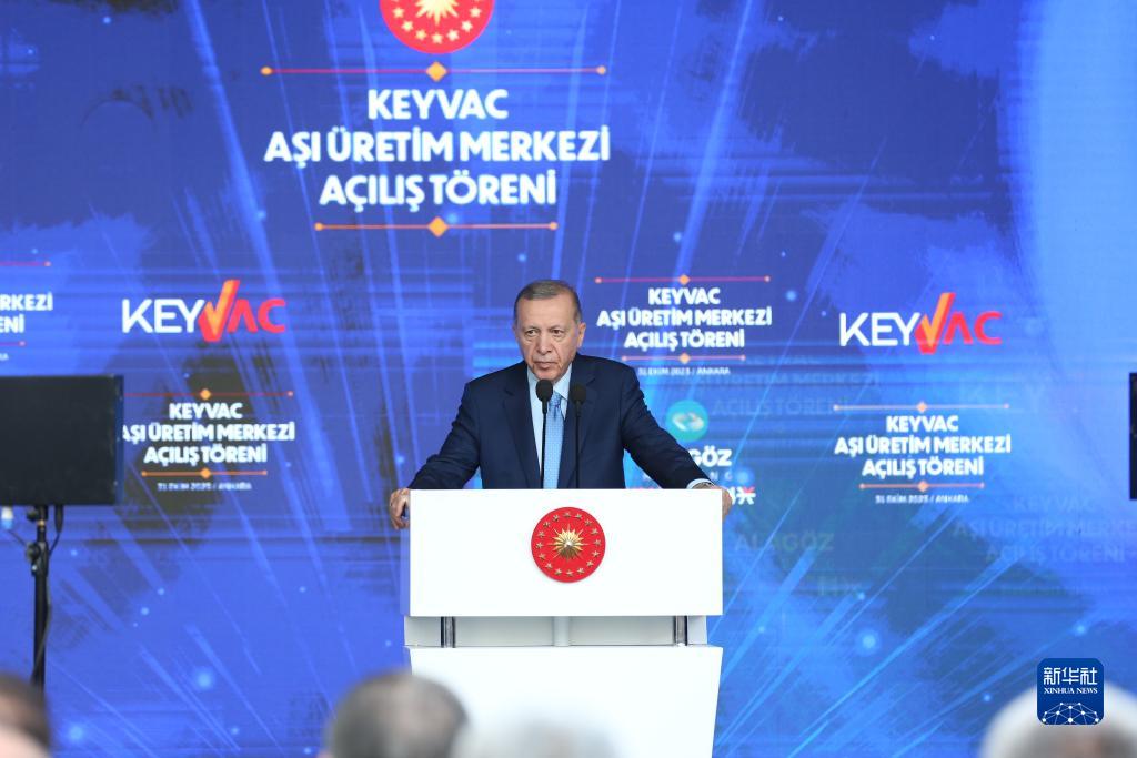 10月31日,土耳其總統埃爾多安在安卡拉舉行的疫苗生產(chǎn)中心啟用投產(chǎn)儀式上講話(huà)。