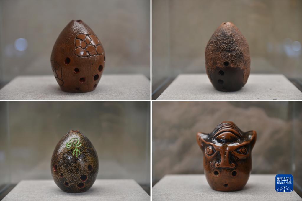 這是在河南省武陟縣黃河交通學(xué)院黃河文化館內拍攝的黃河泥塤(拼版照片,10月31日攝)。