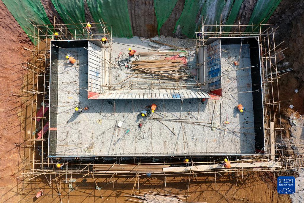 11月1日,正在進(jìn)行橋墩施工的老猴沖大橋(無(wú)人機照片)。
