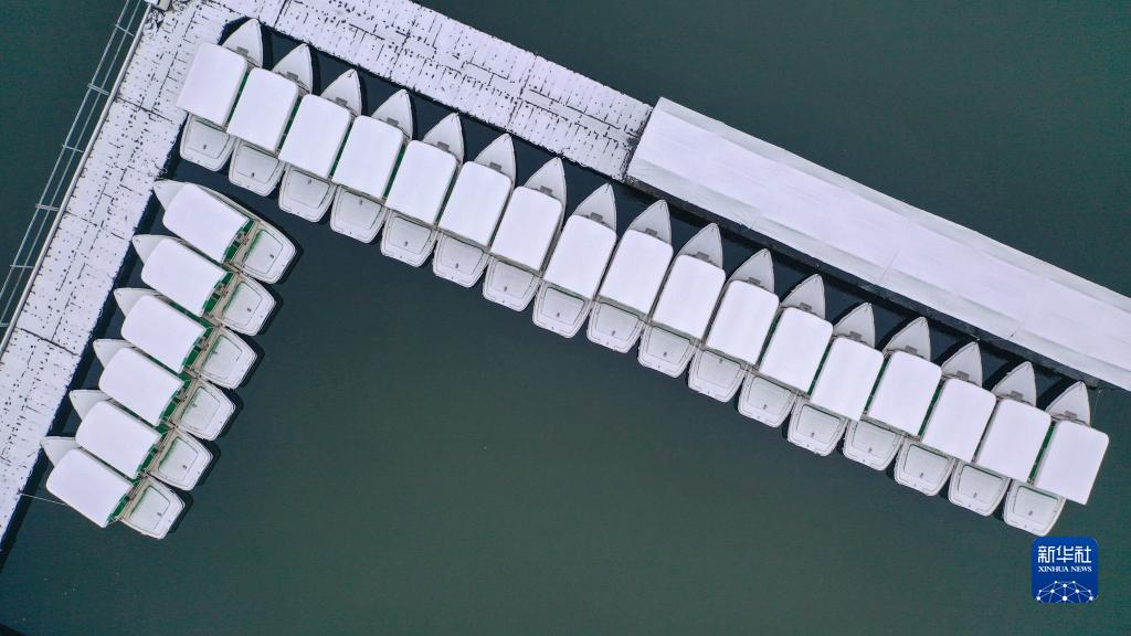 11月1日拍攝的長(cháng)春市南湖公園雪景(無(wú)人機照片)。